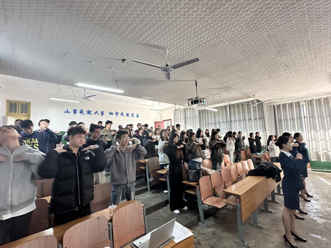 图1 行业导师梁梦玲为空乘25级学生进行现场教学