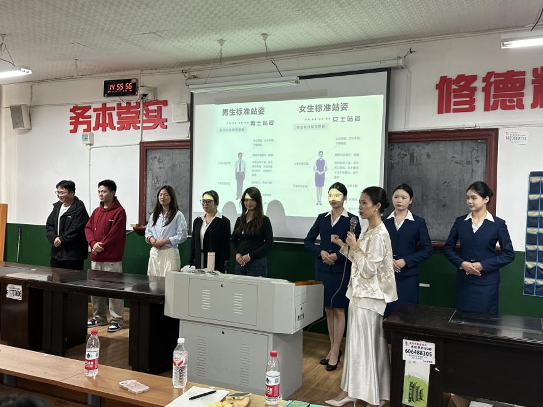 为强化理论应用,活动专门设置了模拟面试环节。学生依次参与从初试到终审的全流程考核,包括小组讨论、情境问答、形象展示等。导师团队现场点评每位学生的表现,并针对性提出改进建议,如面试着装需遵循"白衬衣、黑色一步裙、无装饰黑皮鞋"的规范,回答问题时需突出安全责任意识与沟通能力。一名参与学生表示:"模拟面试让我直观感受到职场氛围,导师的指导帮助我发现了细节不足,比如手势的规范性和应对突发问题的逻辑性。"这种"讲练结合"的模式有效缓解了学生的紧张情绪,提升了实战信心。