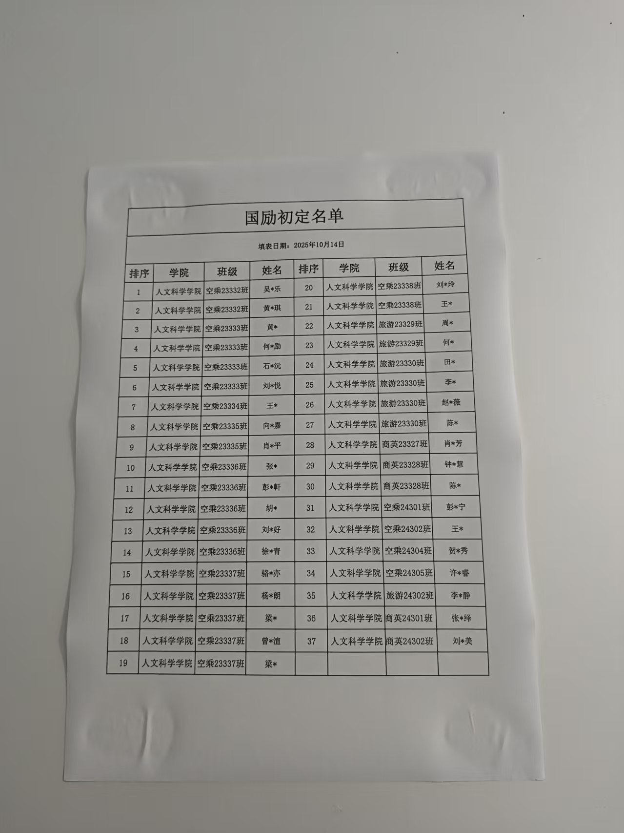 人文科学学院2024-2025学年度国家励志奖学金初审名单公示